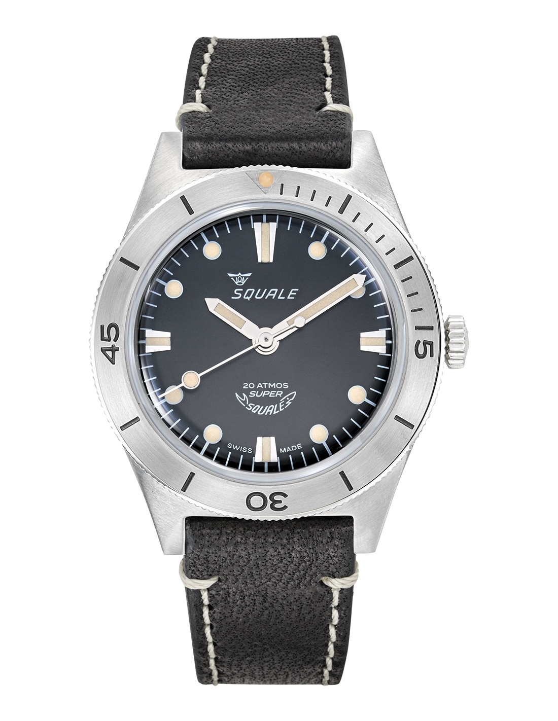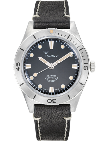 Squale Super Squale Μαύρο δέρμα Sunray Pολόι SUPERSSBK.PN