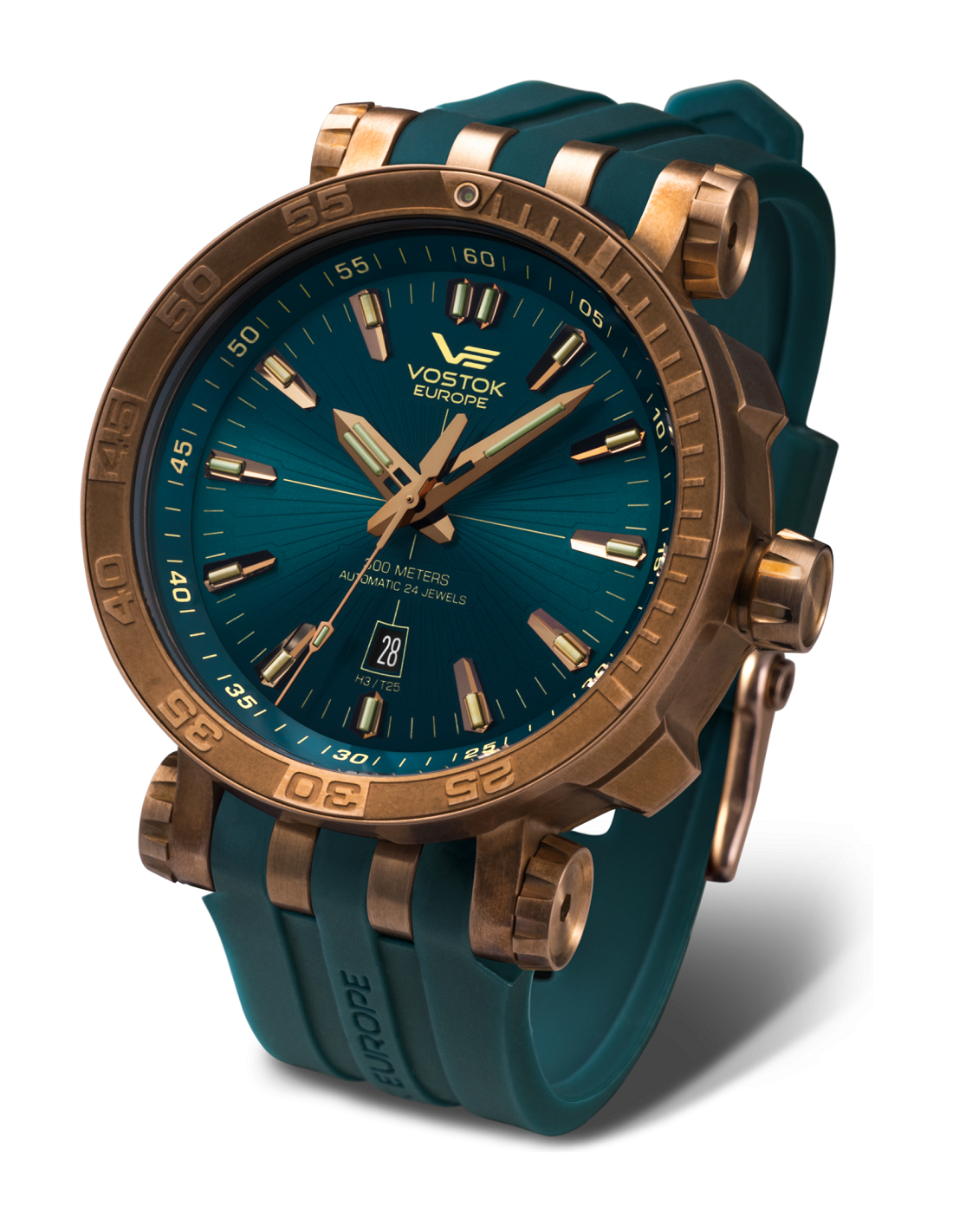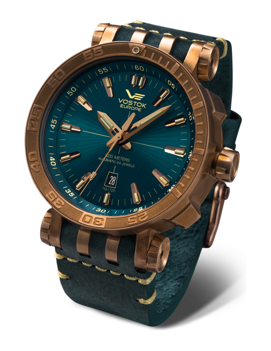 * Estos relojes están fabricados en auténtico bronce. El bronce es una aleación de cobre altamente mecanizable que garantiza los más altos estándares de calidad en la construcción de la caja de su nuevo Vostok-Europe reloj. Como el cobre y el estaño son componentes clave de la construcción de esta aleación, el metal compuesto final está sujeto a la oxidación. Como tal, después de unas semanas de uso, estos relojes desarrollarán una "pátina" Esta pátina puede producir una variedad de colores en la superficie del metal y, de este modo, hacer de cada pieza de bronce Vostok-Europe un artículo único con una coloración distinta de la caja que será el reflejo personal de su portador. Sin embargo, si prefiere la ausencia de pátina en su reloj, la caja puede pulirse con cualquier pasta de pulido de bronce profesional. No recomendamos hacerlo, pero es una opción.
