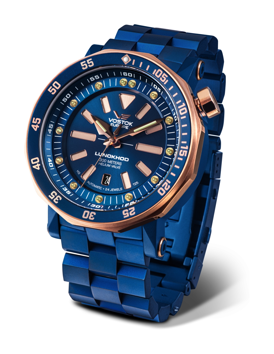 - Une soupape de décharge automatique d'hélium. Il est intégré dans le boîtier de la montre avec une valve unidirectionnelle à ressort activée lorsque la différence entre la pression intérieure et la pression extérieure atteint un niveau critique. Cette fonction est utile pour les plongeurs professionnels opérant à de grandes profondeurs en utilisant des cloches de plongée avec un mélange de gaz respiratoire à l'intérieur