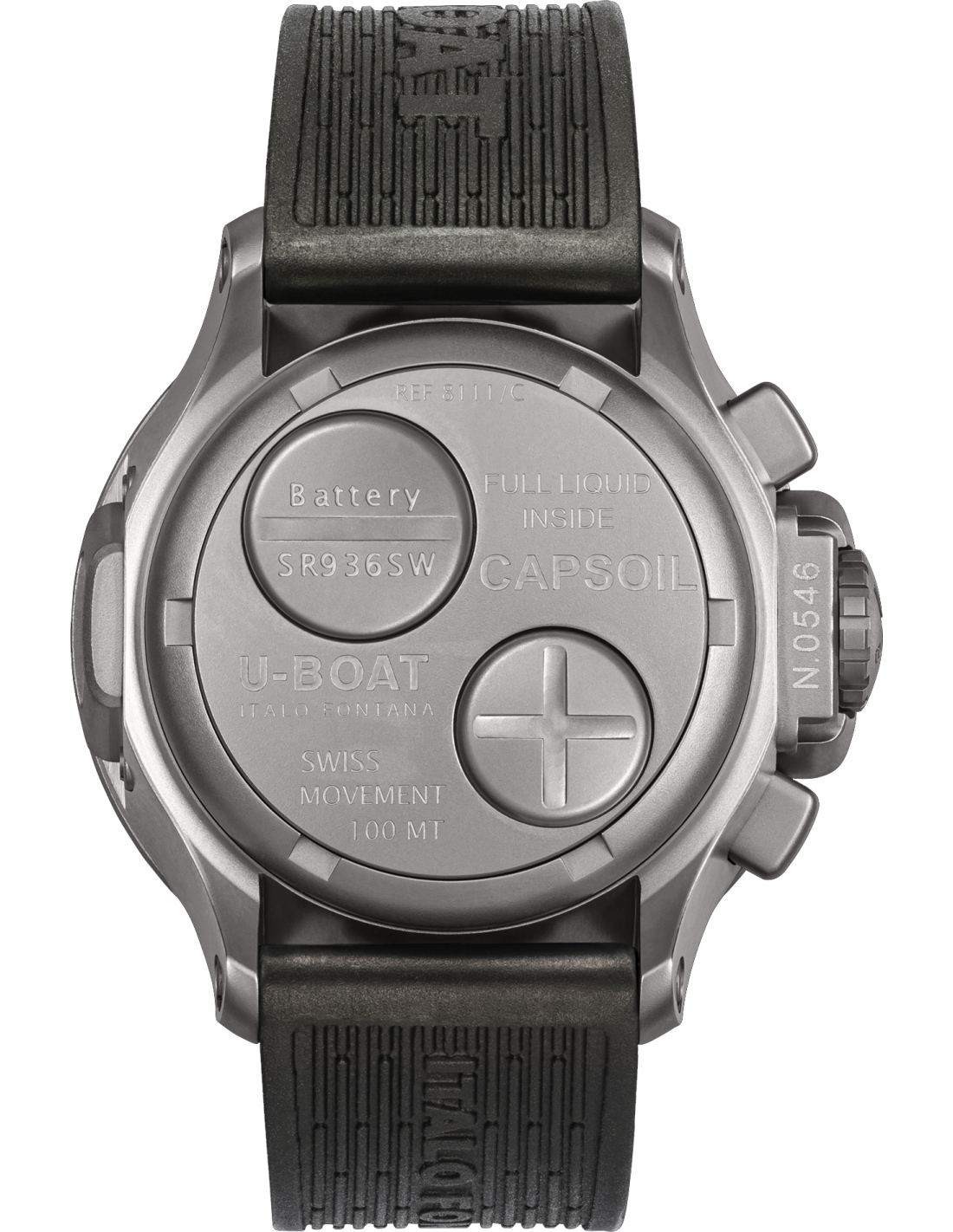 - Svájci gyártmányú elektromechanikus óramű, olajfürdővel kenve, személyre szabottan a U-BOAT specifikáció szerint