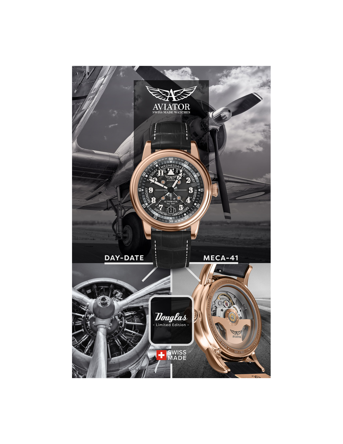 Hodinky AVIATOR Douglas Day-date Meca-41 Automatic V.3.36.2.285.4